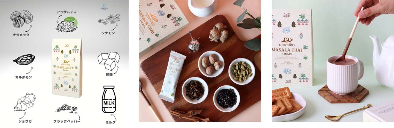 株式会社ALAMIKO SOLUTIONSは、日本とインドの架け橋となることを企業目標に掲げ、様々な事業を展開しています。弊社が手がける「アラミコマサラチャイ」は、日本人の口にも合うように調合された甘味と芳醇なスパイスの香りが特長です。