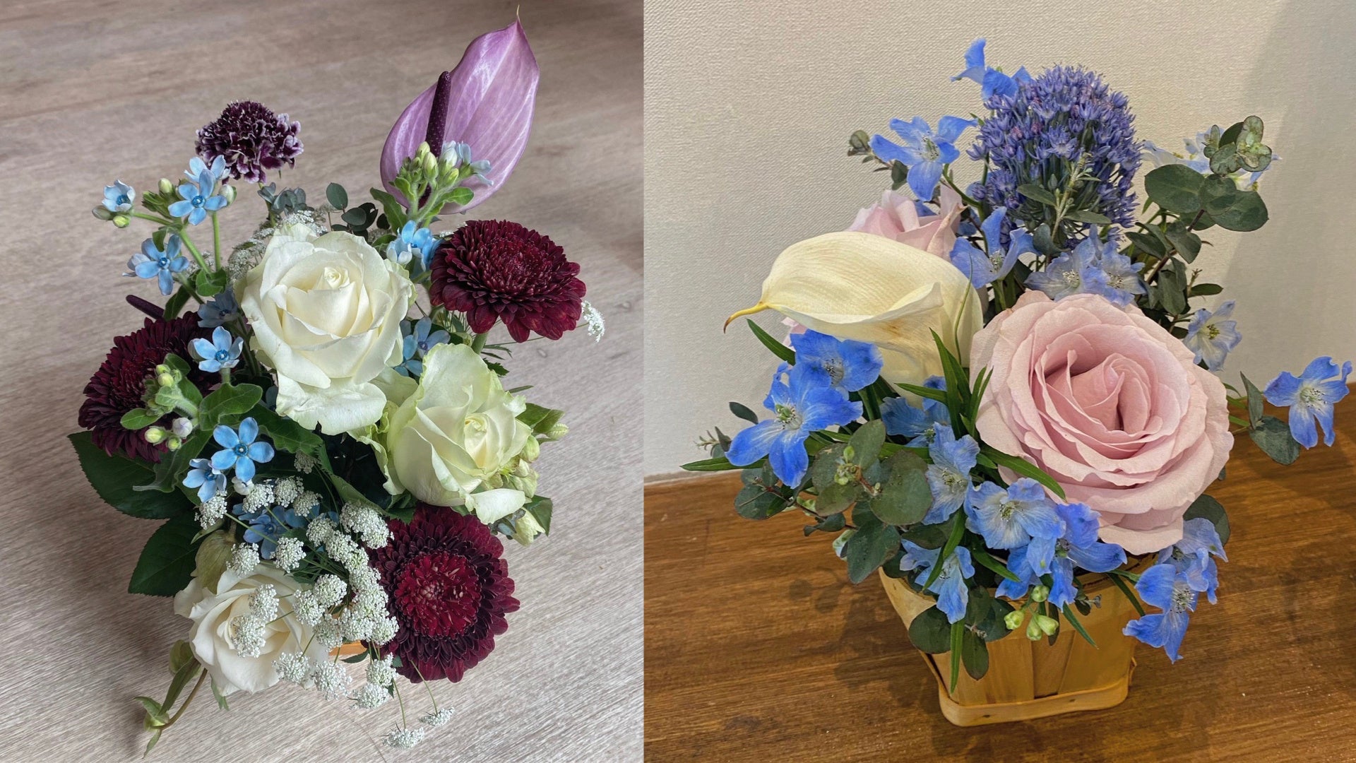 また、フラワーロス問題への取り組みも行っており、生花のロスを減らすため、少し痛み始めているものを半額以下で販売する“レスキューフラワー”の活動もしております。その他、departure(出発)というラインで花を使った作品の制作及び販売、ドライフラワーを使った作品制作を子供達に体験できる機会も設けております。