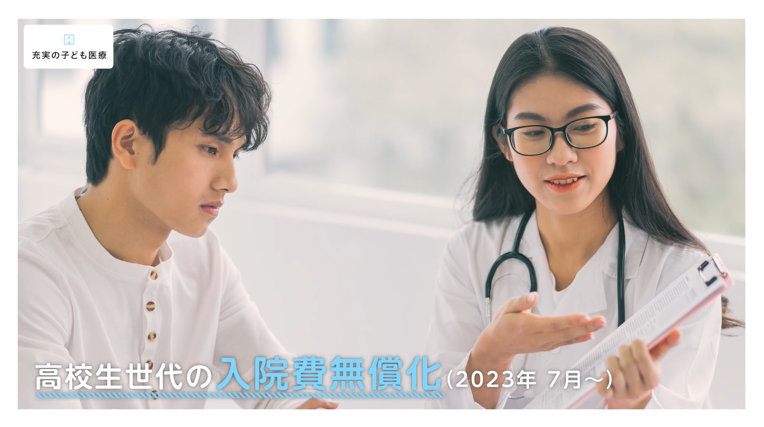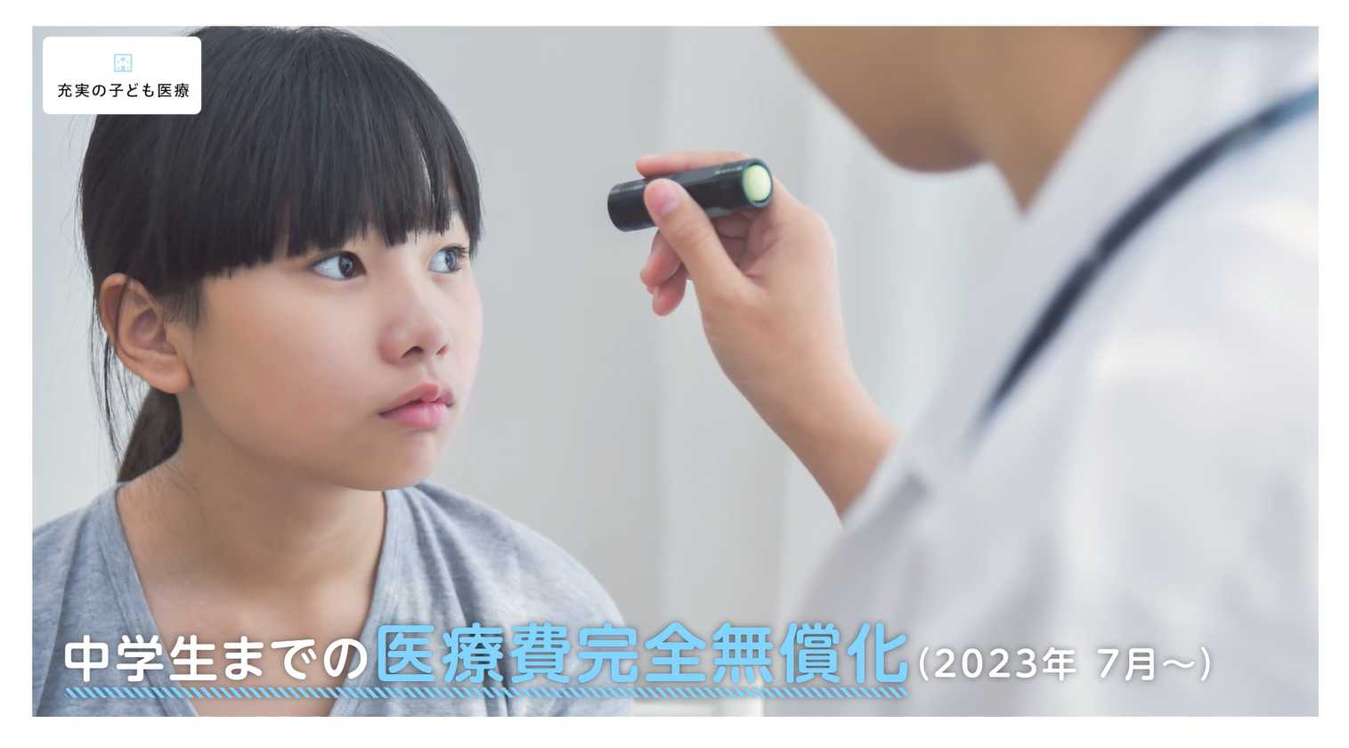 2023年7月から開始、所得制限なしで中学生までの医療費(通院費・入院費)+高校生世代の入院費を新たに無償化いたします!