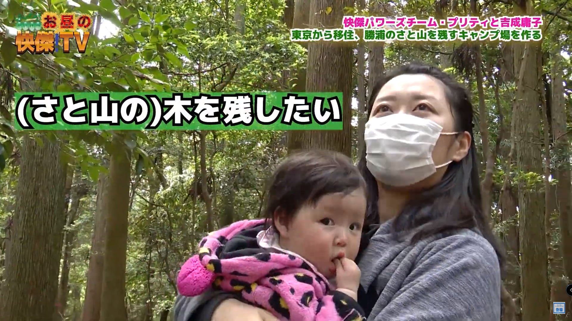 (映像:千葉テレビ放送「お昼の怪傑!TV」東京から移住、勝浦のさと山を残すキャンプ場を作る)
