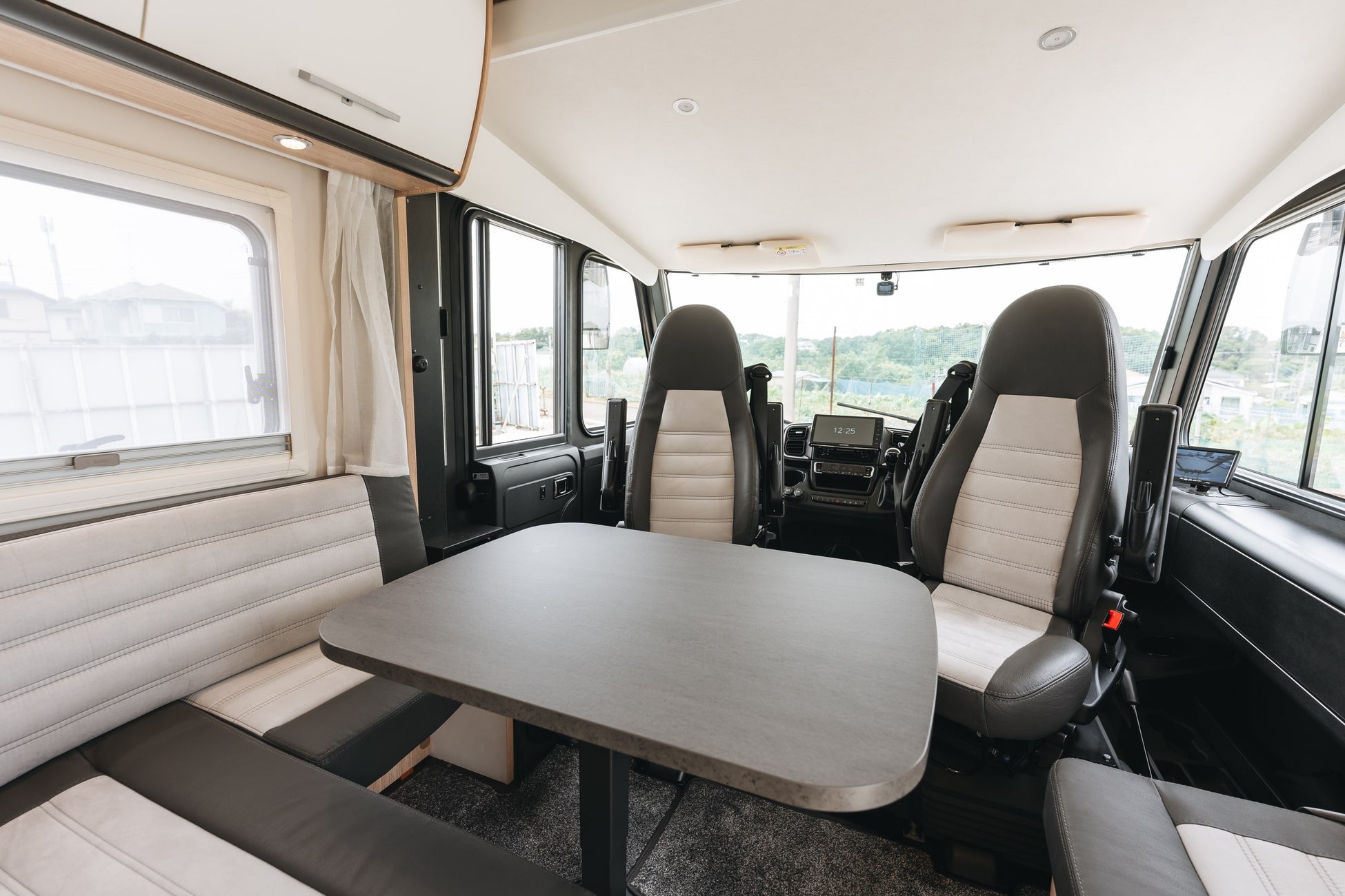 ラグジュアリーで洗練された室内を体験できる海外製キャンピングカーは、キャンプ用途以外にもリモートワークスペースや撮影時の控室利用、快適な車中泊等が楽しめます。