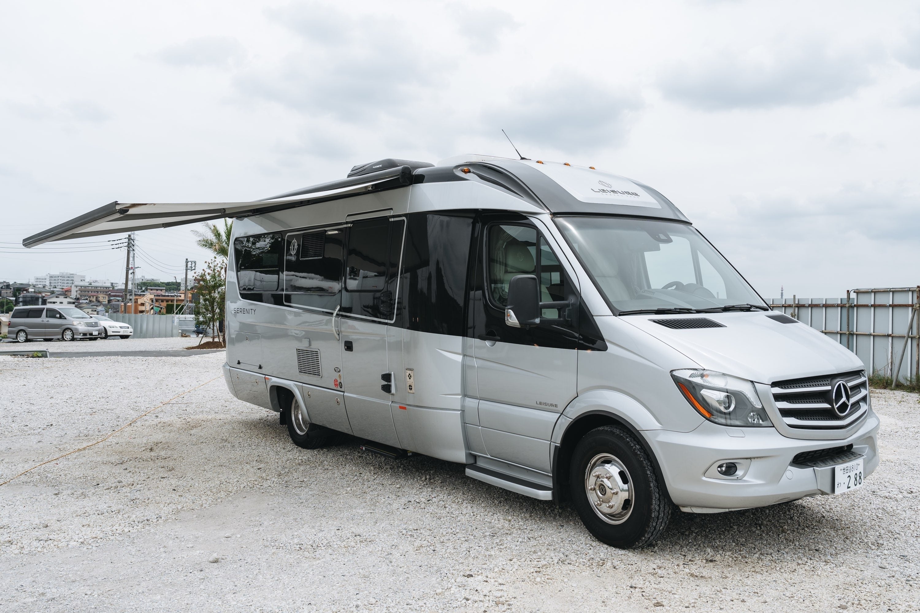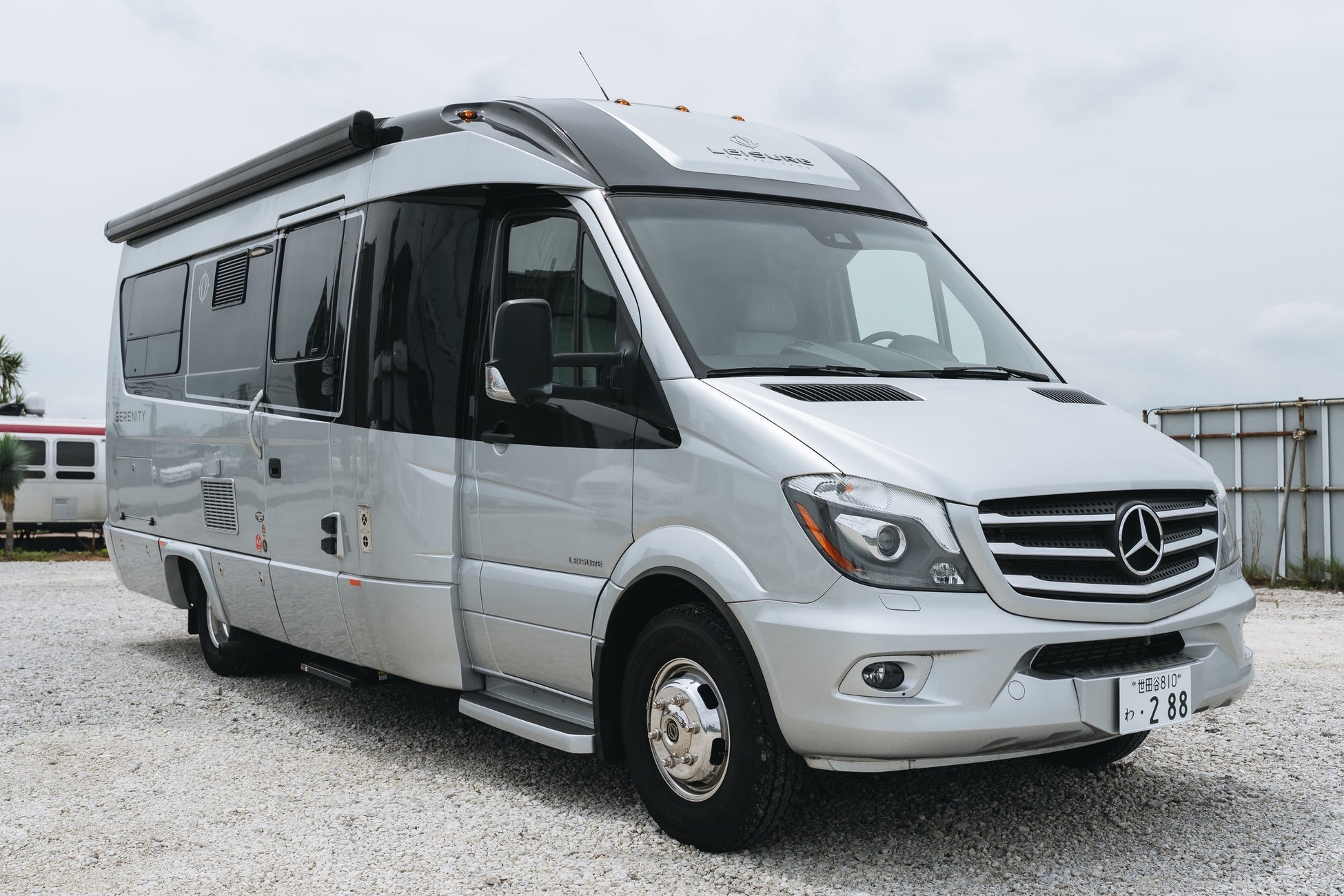 日本で1台しかないグジュアリーな大型キャンピングカーの「SERENITY」は、カナダのLEISURE社が製作した最新車両。ベース車両は海外でも大人気のメルセデスベンツのスプリンター仕様で、広いキッチンスペース、ベッド、リクライニングソファも完備、お一人様からご家族・ペットも同乗しながら車中泊を楽しむことが可能。