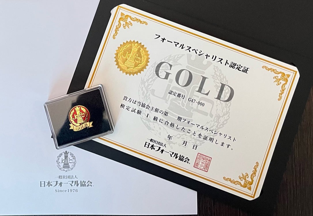 麻布テーラーでは、全店舗に日本フォーマル協会のフォーマルスペシャリスト検定の資格を持ったスタッフが在籍しています。フォーマルのルールを熟知する資格を有しているからこそ、時代とともに変化する社会的慣習や礼儀を、お客様の個性に程よくマッチングさせるご提案をすることが可能です。
