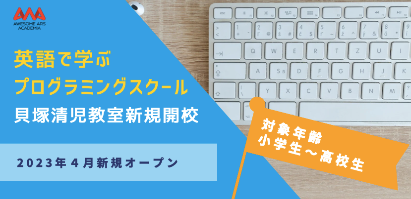 株式会社Awesome Ars Academia(オウサムアルスアカデミア)(本社:東京都渋谷区、代表取締役:西出大介)は、「プログラミング」を学びながら、「直接外国人講師から英語で学び、聞き、話す」をコンセプトに大阪府貝塚市にAwesome Ars Academia国内初のリアル校「貝塚清児教室」を4月に開校します。