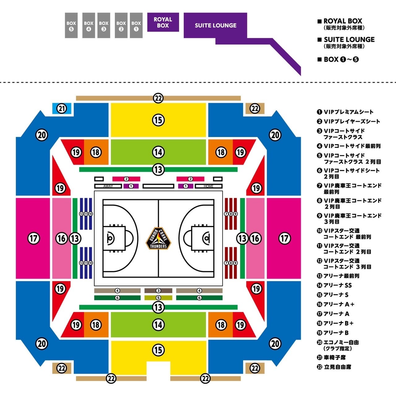 ・VIPエリア(新設)は、サンダーズの試合の際は、限られたお客様のみアクセス可能です。スイートラウンジ(新設)へのアクセス、専用出入口からご入退場いただき、専任スタッフがご案内いたします。