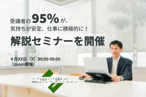 受講者の93%が、気持ちが安定し仕事に積極的に!3ヵ月の『セルフコーチングプログラム』により達成。解説セミナーを開催。