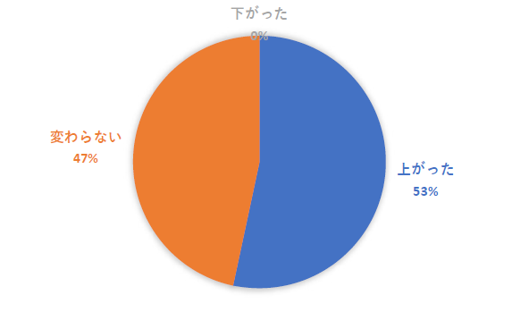 受講者アンケート結果から、93%に仕事上のプラス変化が見られ、53%の社内評価が向上しました。以下は、変化に関する受講者コメントの⼀部です。