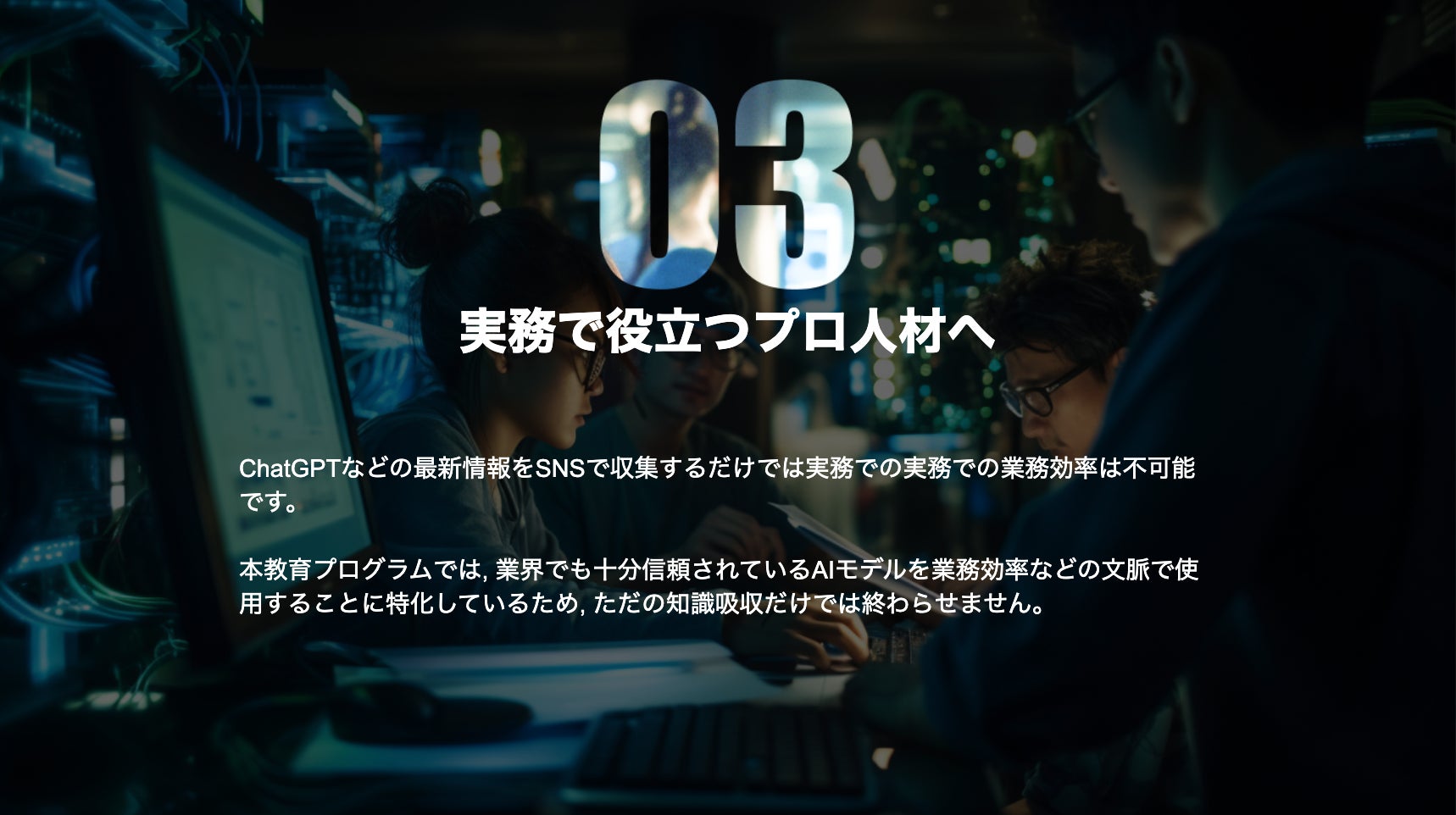 そこで当社では、プロンプトエンジニアリングを行う生成AI専門の人材育成プログラムを7月下旬に開講することを発表いたしました。