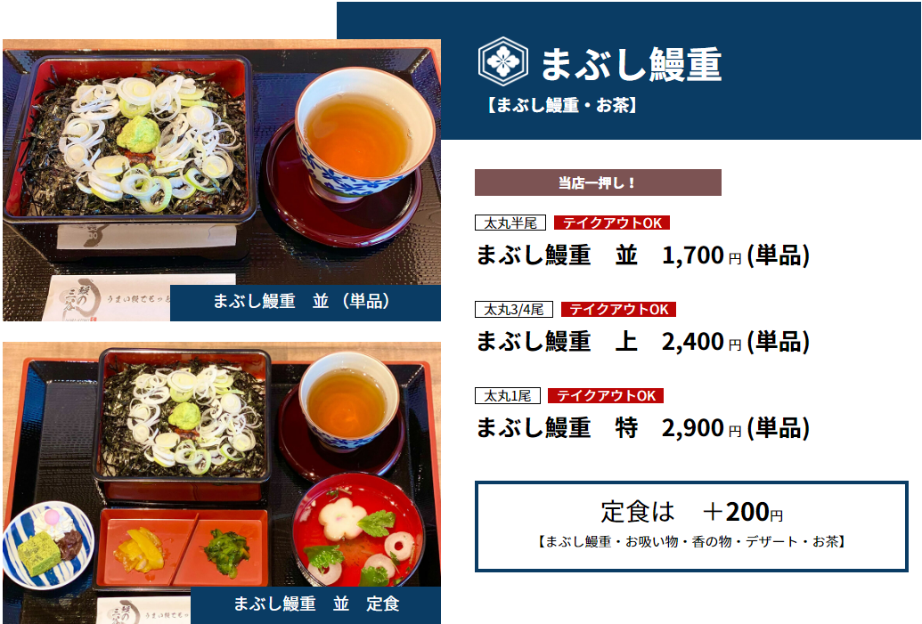 ひつまぶし御膳 特:3,000円 太丸1尾