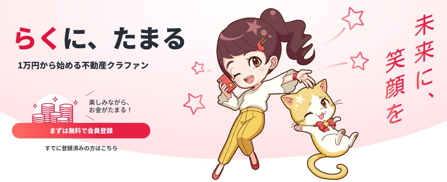 『らくたま』は、スマホでポチッと!手軽に始められる不動産クラウドファンディングです。「貯蓄から投資へ」「人生100年時代」の資産形成に向けて『らくに、たまる』をコンセプトに新しい投資ライフをご提案します!