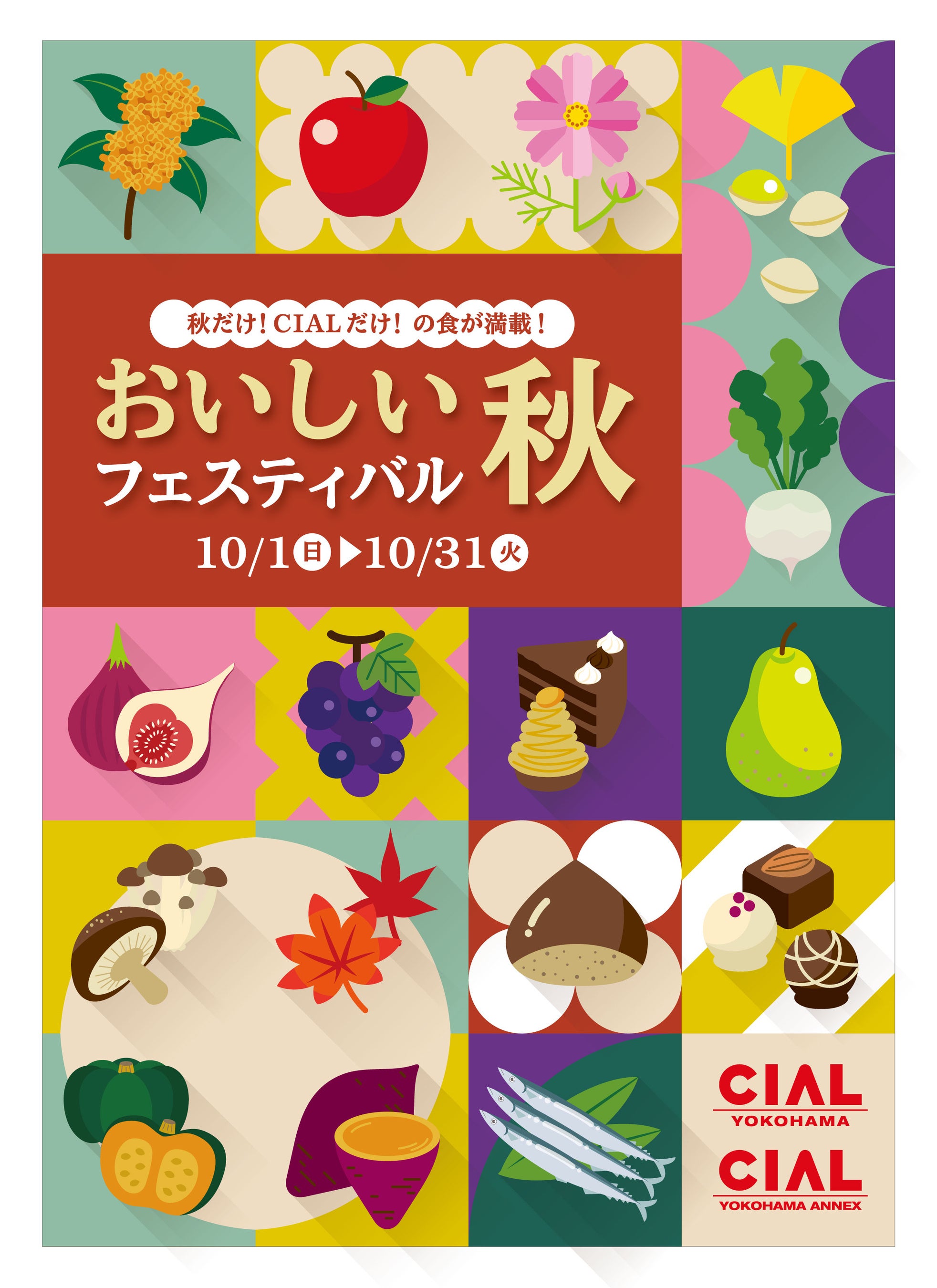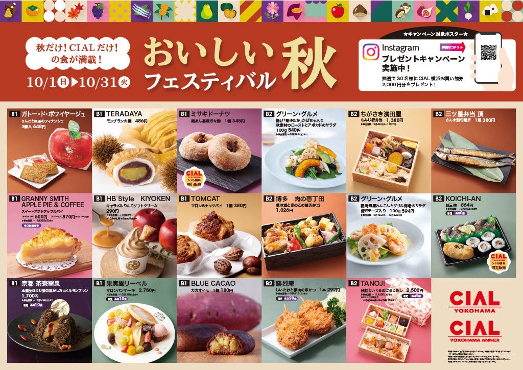 秋だけ!CIALだけ!の食が満載!Instagramキャンペーン、JRE POINTトリプルポイント、LINEクーポン抽選会などイベントも盛りだくさん。10月1日(日)~10月31日(火)開催。