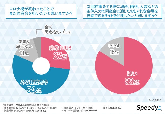 同窓会の幹事の83%が気軽に使える検索サイトを利用したいと返答