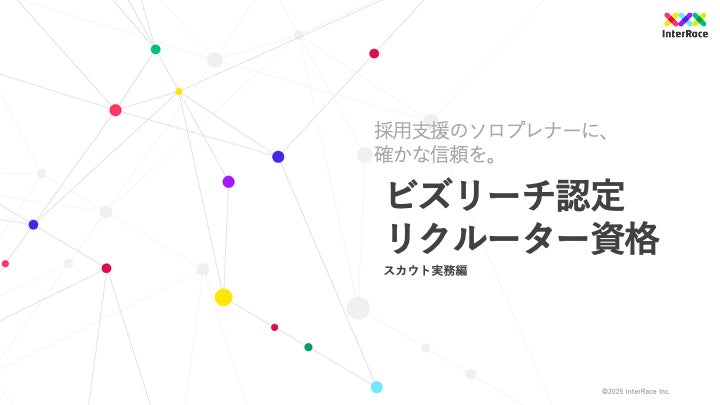 「人材の最適配置により、日本の生産性を底上げする」ことをPurposeに掲げ、「新しい働き方を編み出していく企業」であるInterRaceとして、こうした市場ニーズと社会課題に応えます。日本最大級の即戦力データベースを持つビズリーチの開発協力のもと、InterRaceの高い採用支援技術の中でも、中途採用における母集団形成の支援にあたって必須な技術・考え方を網羅した「リクルーター資格 スカウト実務編」を新設しました。