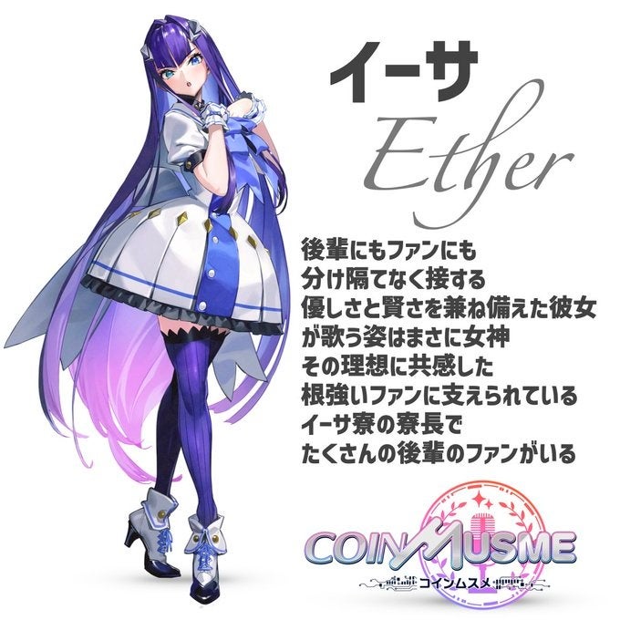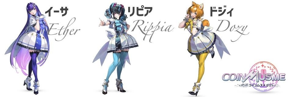 コインムスメはEureka Entertainment Ltd.が「新しい熱狂を⽣む、Play to Earnの世界的ロールモデルの創出」を掲げて開発する年内公開予定のブロックチェーンゲームで、仮想通貨をモチーフにしたアイドルキャラクターたちが登場します。