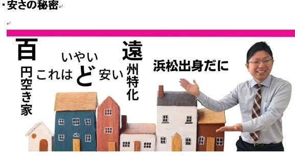 浜松市中区高林のHAPPYROOM株式会社(代表取締役仲秋尊博)で地域の空き家問題に一石を投じる新サービス「100円空き家管理相談センター」が始まりました。浜松市の調査によると、平成30年の時点で空き家が4万7千戸存在します。弊社代表の実家も築40年で&6DKの空き家でした。築年数相応の経年劣化があり維持管理に困っていた経験から発想を得たアイデアです。平均月額5千円の空き家管理費が高額で支払えないため、放置されることが多い空き家。これを破格の管理費100円にすることで放置空き家を減らすことができます。そして空き家を管理することで、治安維持に貢献しながら空き家情報を集めることができます。その中で、空き家の価値に気づいていない所有者と、現状の賃貸に不満を持っている借主のマッチングに繋げます。