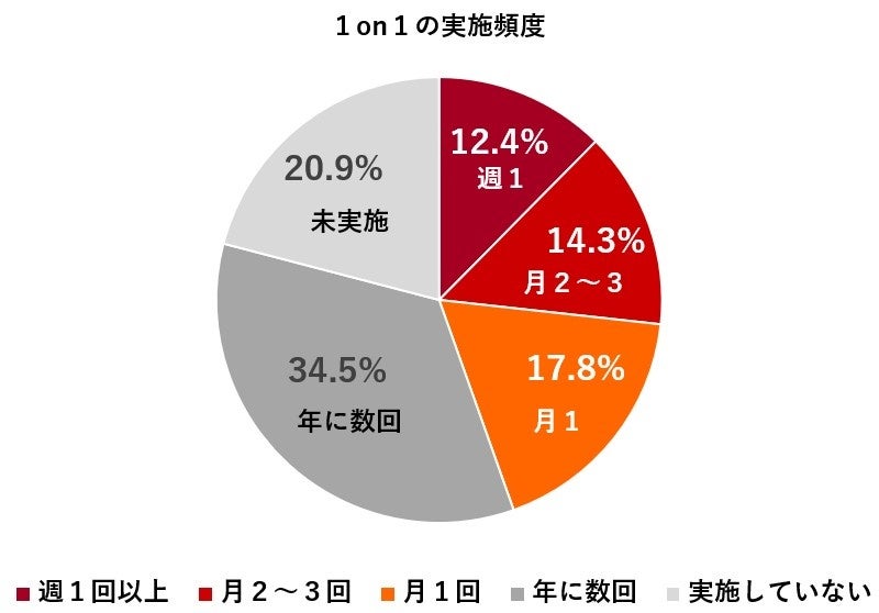 1on1の実施率は月1回以上で44.6%、毎週実施はわずか12.4%