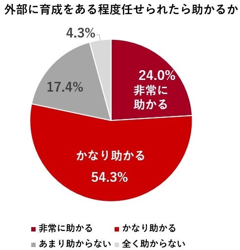 育成を外部に任せられると助かると答えた人は78.3%、最も多い理由は忙しいから