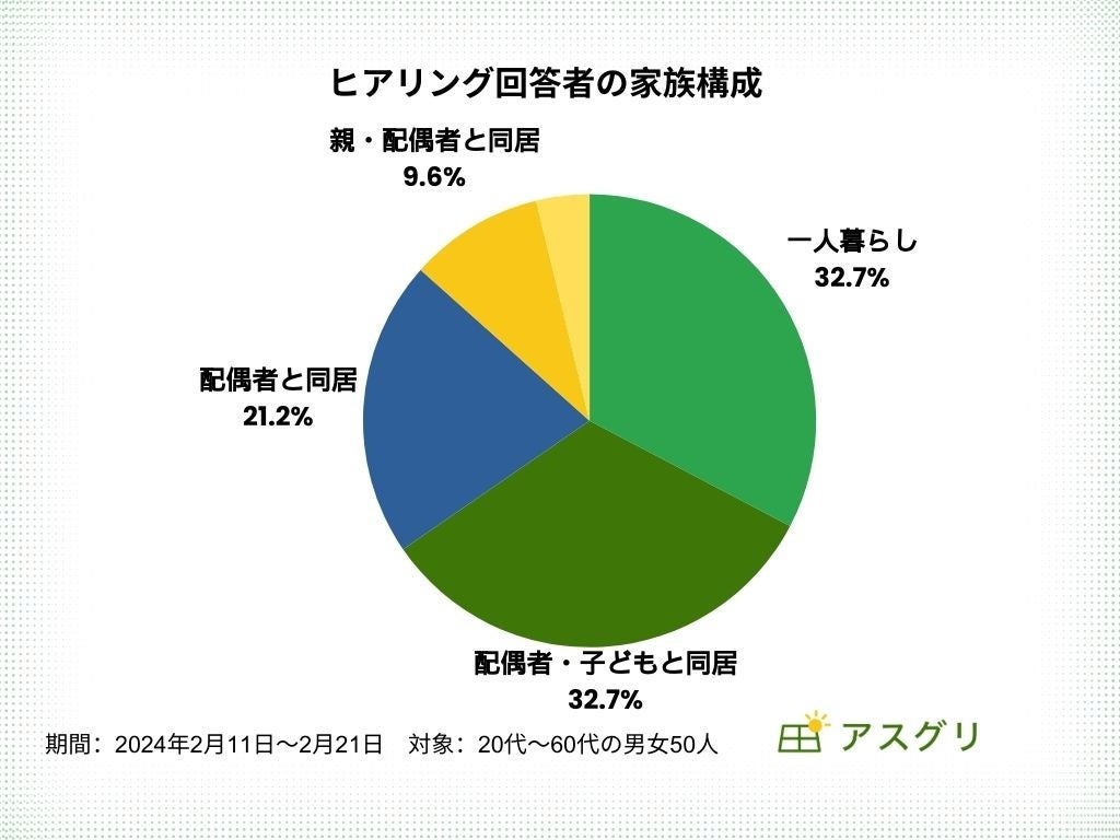 家族構成に関しては、上記の割合で対象者からご回答を得ることができました。