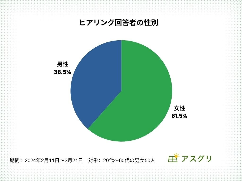 今回の調査では、上記の男女比でご回答を得ることができました。