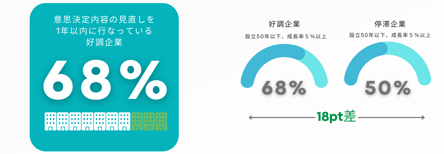 『決裁者の意思決定に関する調査』業績好調企業の68%が意思決定内容を1年以内に見直していることが明らかに