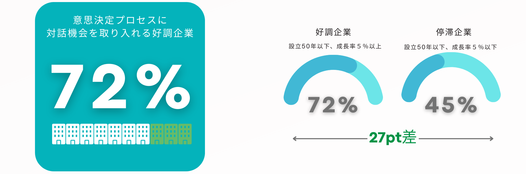 1.好調企業の72%が意思決定のプロセスにおいて対話機会を取り入れている