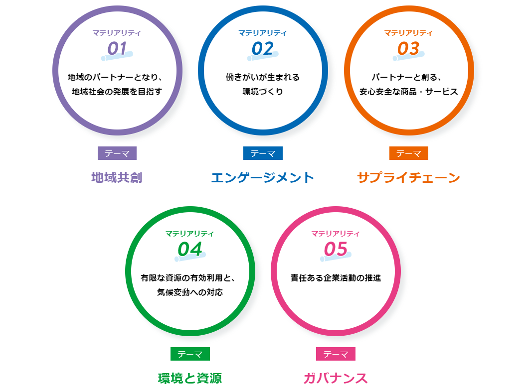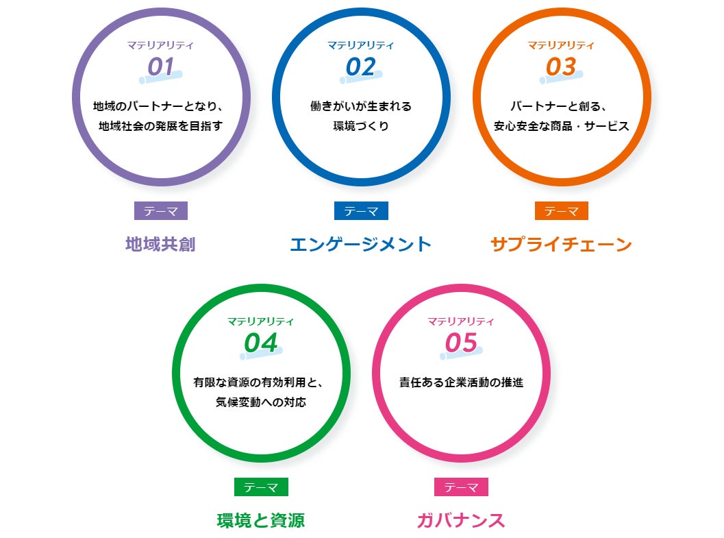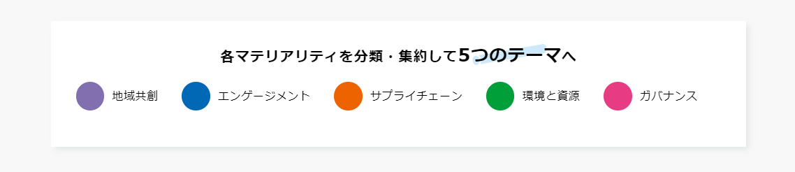 当社は、ミッションとして「私たちは、期待を超えるオンデマンドソリューションの提供を通じ、サステイナブルな社会の実現に貢献します。」を2020年に掲げ、サステナビリティ経営を進めてまいりました。この度、中長期視点での経営戦略として、当社及びステークホルダーにとって重要度の高い対応すべき課題をESGの観点から総合的に評価し、企業価値の向上に向け、特に優先して取り組むべきテーマとして5つのマテリアリティを特定しました。
