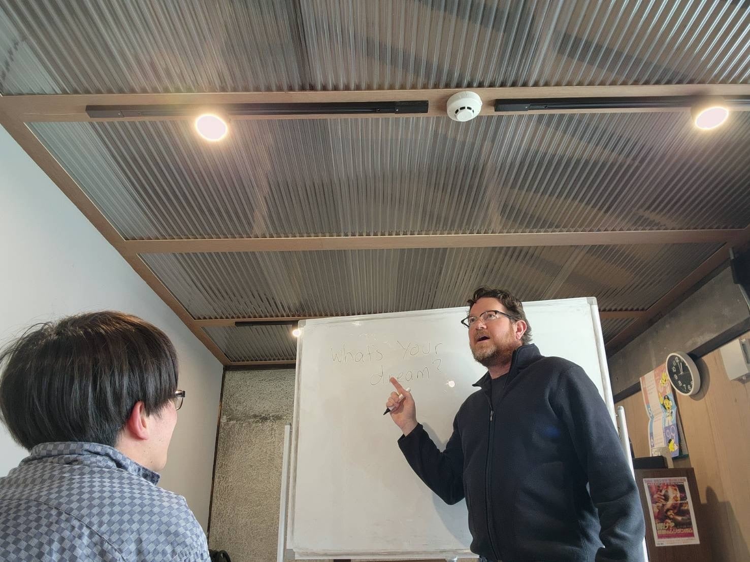 英会話教師サムおじさんによる、ワンコイン英会話レッスンが受けられます。学んだ英語を使ってお店で会話に挑戦しましょう。