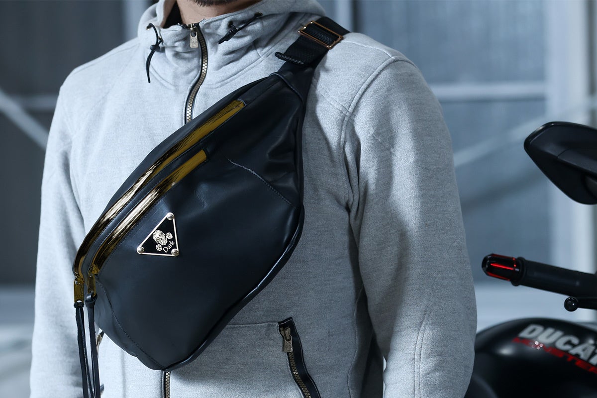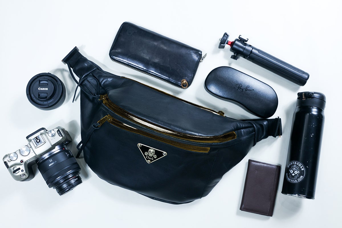 今回の商品はハイブランド的な雰囲気を大事にし、3M防水牛革でタフに使い倒せ、かつ容量は少し大きめという、ツーリングでも便利なバックを開発してみました。