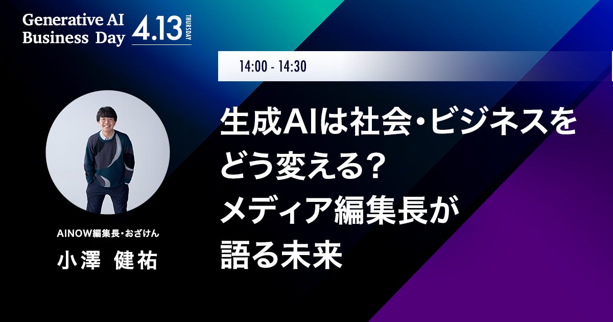 ChatGPTや生成AIのビジネス活用を学ぶビジネスパーソンのための祭典「Generative AI Business Day」、追加登壇者が決定