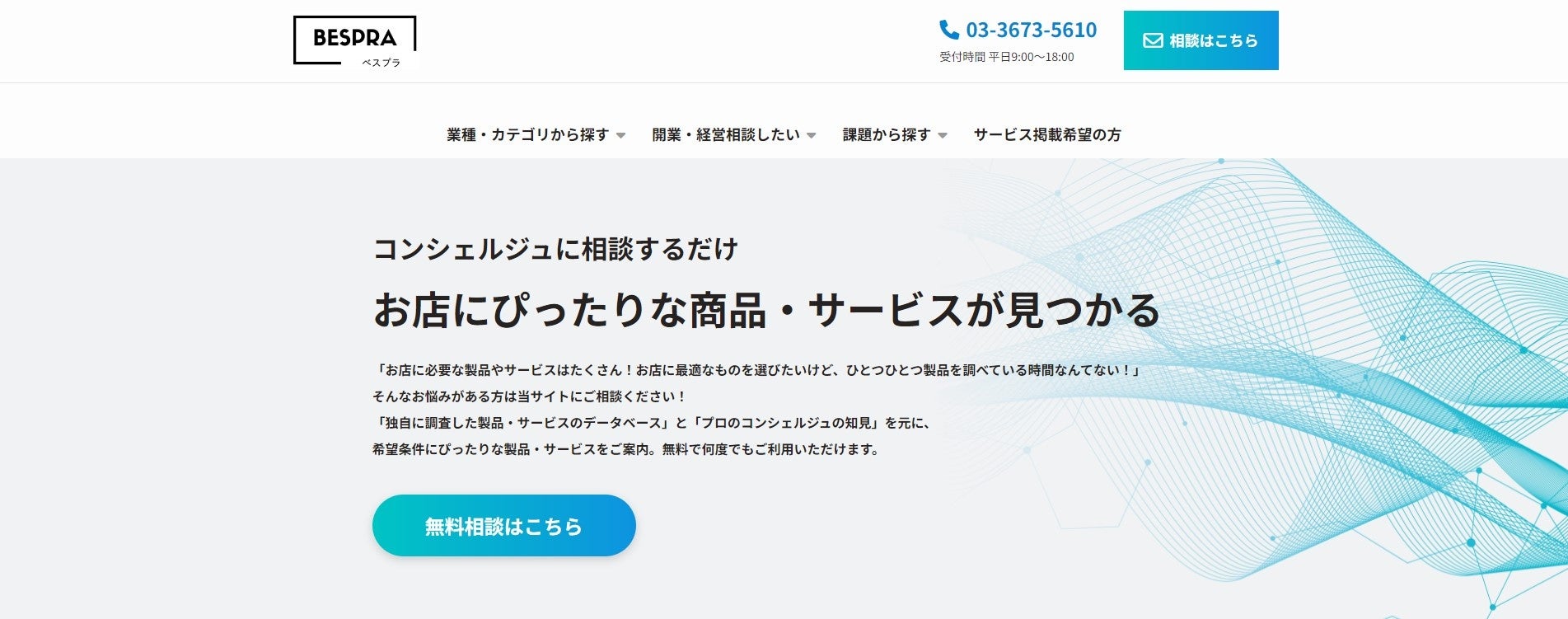 上記のような課題を解決するべく「BESPRA(べスプラ)」では、徹底調査に基づきお店の業種・規模・重視する観点別でおすすめの製品・サービスを紹介しています。また、専門知識をもつコンシェルジュによる無料選定サポートも実施しています。コンシェルジュによる選定サポートでは、徹底調査して取得した製品・サービスデータとコンシェルジュの知見を組み合わせて、各ユーザーに最適なサービスを紹介いたします。