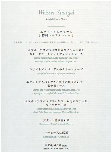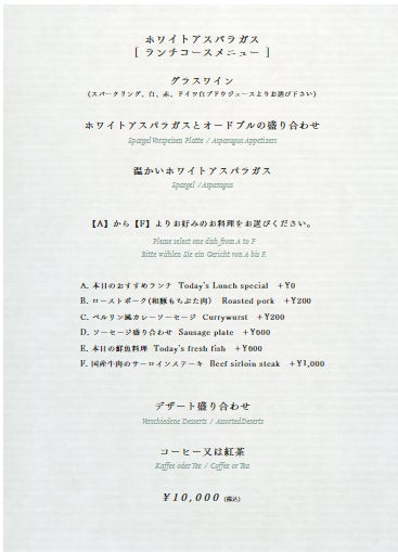 ドイツの春を告げるホワイトアスパラガスをコースで体験できる希少なドイツ料理レストラン