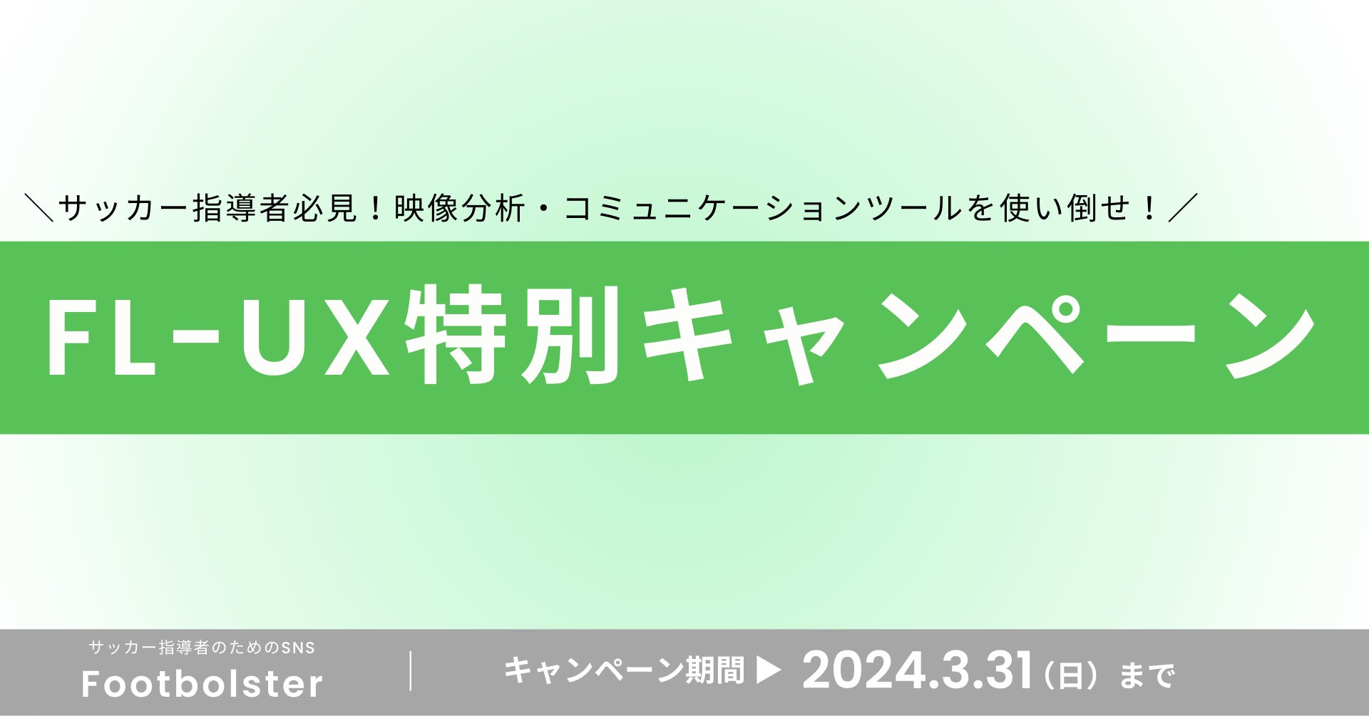 サッカー指導者向けのナレッジ共有サイト「Footbolster」を利用する全てのサッカー指導者に向け、映像分析・コミュニケーションツール「FL-UX」の特別キャンペーンを開始しました。