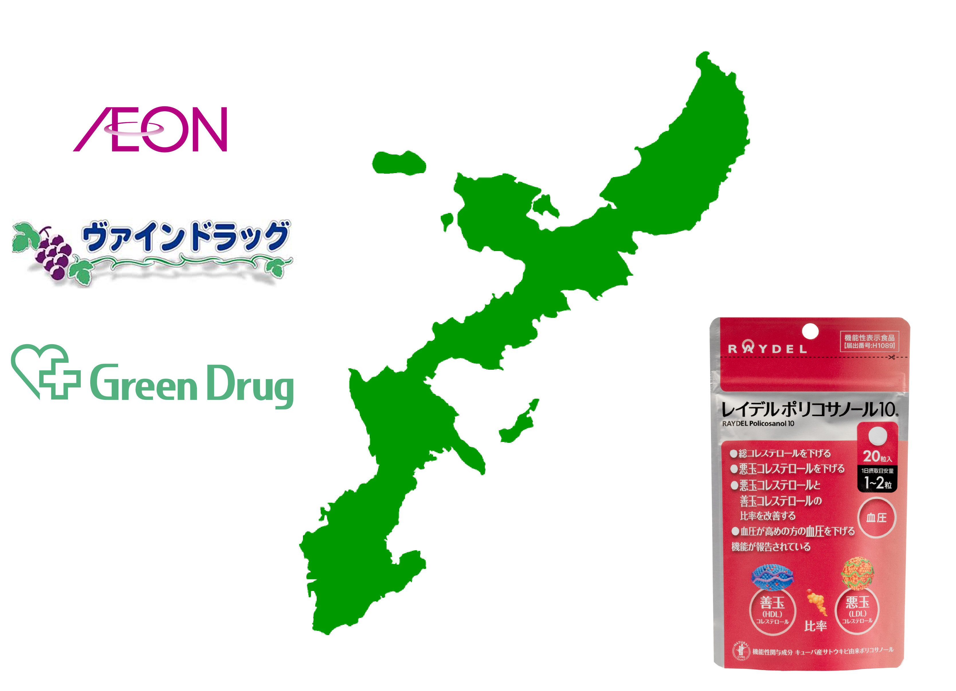 30年以上の研究開発を背景にヘルスケア製品を製造・販売する株式会社レイデルジャパン(以下、レイデルジャパン)は、血圧の低下、コレステロール値の正常化などの機能に関する届け出が、消費者庁に受理された機能性表示食品「ポリコサノール10」を、2023年9月29日より、沖縄全域の株式会社イオン琉球、ヴァインドラッグ(有限会社みなと薬品)、グリーンドラッグ(株式会社大賀薬局)にて発売を開始しました。