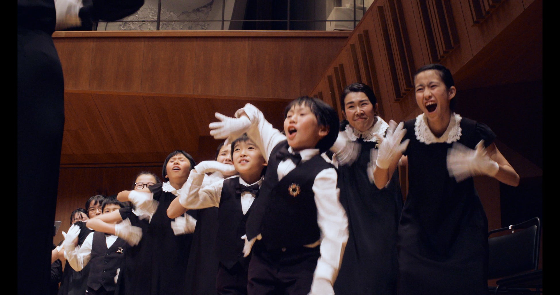 2021年12月21日 東京芸術劇場で、あるコーラスグループがプロのオーケストラのクリスマスコンサートにコラボ出演しました。このグループの名前は「ホワイトハンドコーラスNIPPON」。視覚や聴覚に障がいを抱える子どもや大人、障がいのない子どもも参加するユニークでインクルーシブな楽団です。ホワイトハンドコーラスNIPPONは合唱の声隊ともうひとつ、手話言語をベースに歌詞を「手歌」で歌うサイン隊の二つの部隊で編成されています。「この子どもたちに最高の舞台を経験させたい」と熱心に指導するのはソプラノ歌手コロンえりかさん。手話を交えユーモアたっぷりに子どもたちを導いています。そんな彼らが、プロのオーケストラ・合唱団と同じ舞台に立ち、ベートーヴェンの「第九」に挑戦しました。ベートーヴェンが晩年耳が全く聞こえないながら書き上げた「第九(歓喜の歌)」を、障がいを持った子どもたちが、澄んだ声と「手歌」で歌ったのです。サイン隊の白い手袋から溢れ出る「歓喜の歌」は、オーケストラや合唱と、その場の感動を一緒に作り上げていました。このドキュメンタリーは、ドイツ語の発音もままならないところから始まり、3カ月に及ぶ稽古、そして感動の本番までを記録した、ホワイトハンドコーラスNIPPONの子どもたちによる挑戦の物語です。