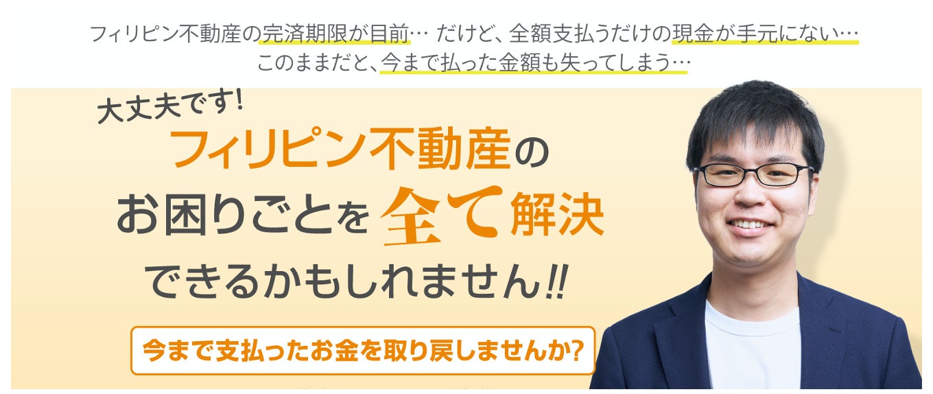 不動産代金を支払えない場合、今まで支払った金額全額と、物件の所有権を失ってしまいます。フィリピン不動産オーナーのそんな悩みを解決するために、フィリピン不動産の問題解決に実績があるProperty Access 株式会社(東京都港区 代表:風戸裕樹)とタッグを組み、今回のサービス開始に至りました。