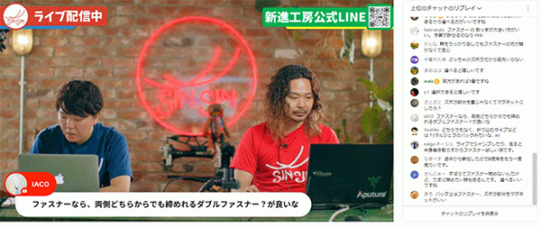登録者6万人を超える新進工房のYouTubeチャンネル。ライブ配信を行い、チャット欄やアンケート機能を使って4000人以上の方から「ズボラサコッシュ-Large-」を作るにあたって様々なアイデアをいただきました!