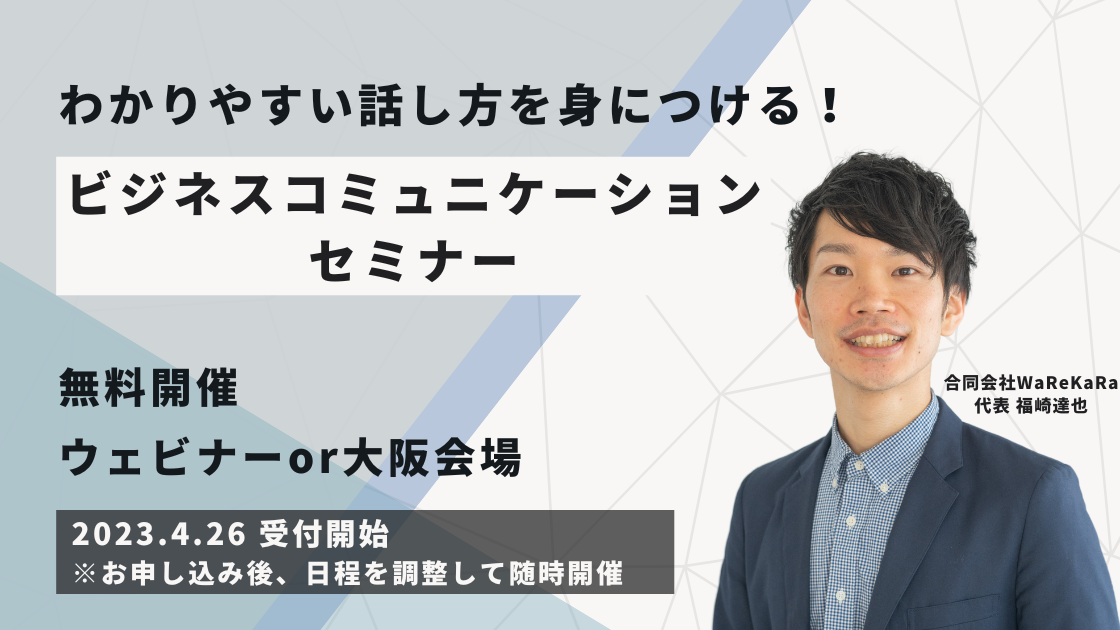 【新セミナー開設】【話し下手なビジネスパーソン必見】わかりやすい説明や伝え方が苦手な人でも伝わるプレゼンや報告ができるようになる!伝え方・コミュニケーションセミナー|4/26(水)から受付スタート