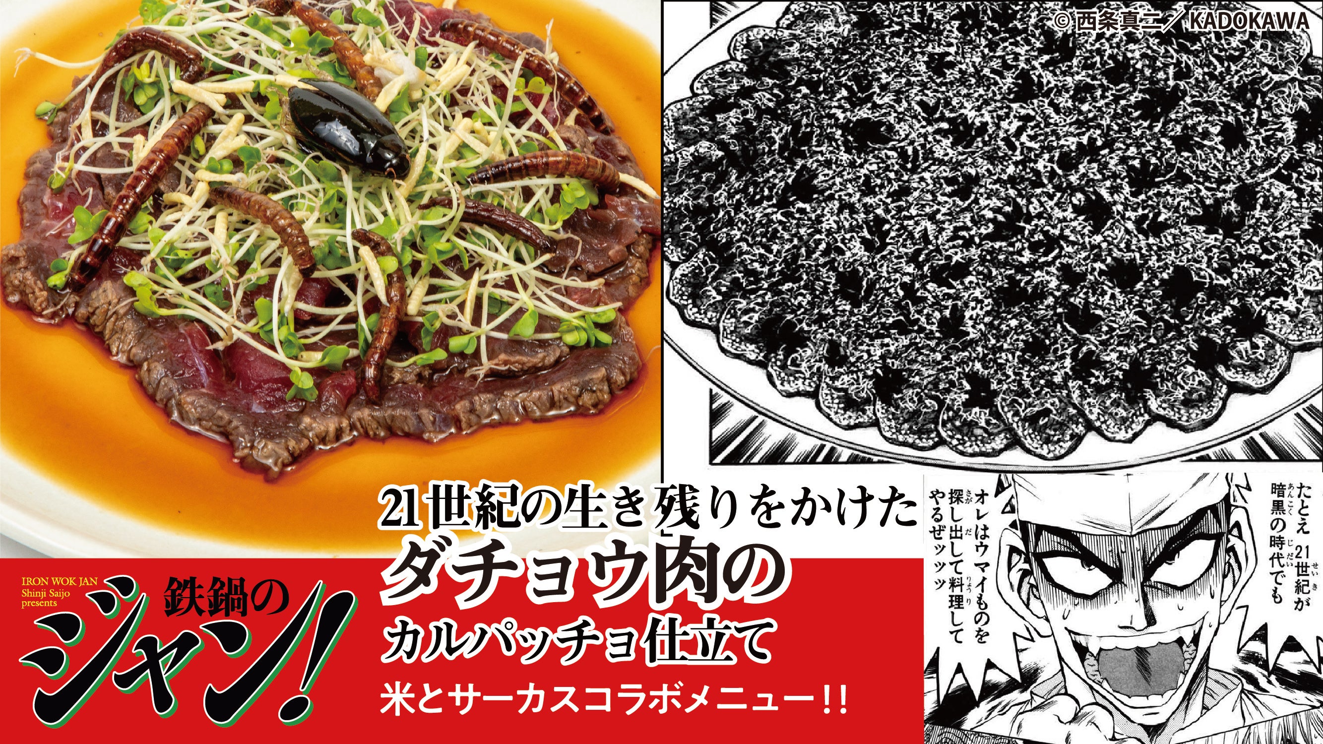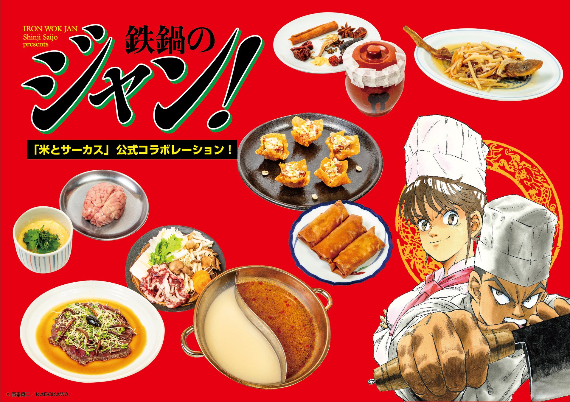 累計発行部数800万部の料理バトル漫画「鉄鍋のジャン!」×ジビエ居酒屋「米とサーカス」がコラボレーション! 11月1日より「ダチョウカルパッチョ」「ハクビシン地獄鍋」「脳みそ茶碗蒸し」など7品を再現。