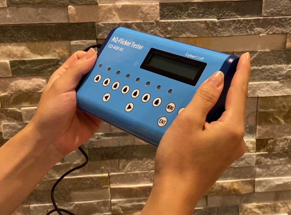 コンピュータ計測制御装置のハードウェア、ソフトウェア開発で大阪ものづくり優良企業賞を受賞した有限会社サイバークラフト(大阪府寝屋川市/代表取締役:尾崎教仁)は学校法人常翔学園 摂南大学の人間工学研究室(大阪府寝屋川市/教授・副学長 川野常夫の研究成果である登録特許(下記)の実施許諾を受け、当社の機器・システム開発力を生かして「AQフリッカーテスター」を予約販売します。
