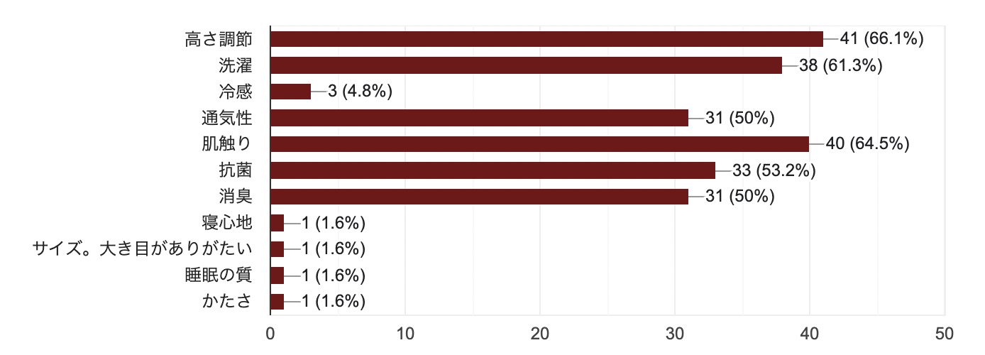 また、洗濯や抗菌消臭など、清潔に保てるかどうかも重要視していることが分かりました。