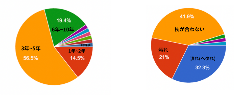 頻度は3年~5年、理由は枕が合わないことが1位。