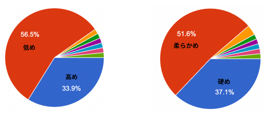 枕の高さは低め、硬さは柔らかめが半数以上。