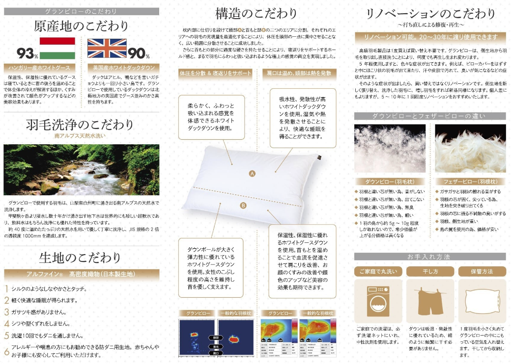 グランピローに使用しているダウンは、50年以上の寿命。側生地が傷んでも羽毛を取り出し直接洗浄し、側生地を張り替えるリノベーションが可能です。