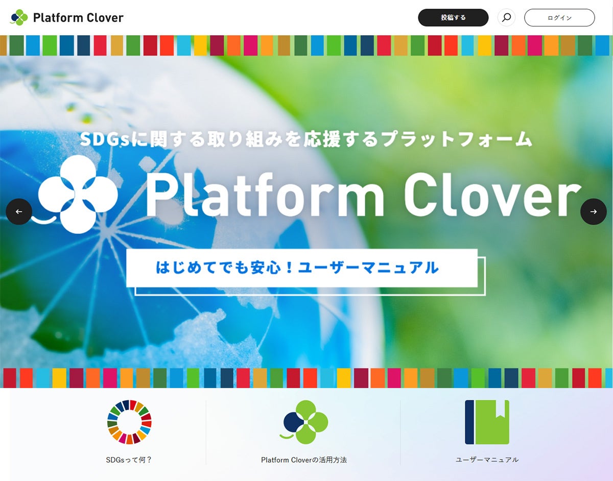 Platform Cloverは、オンライン上でSDGs達成に資する取組やその進捗状況を「見える化」し、関係者間の協働・共創を促すことで、課題解決を目指すために開発されたプラットフォームです。産官学民のあらゆる関係者が自らのSDGsに資する取組を「発信」し、他団体の取組を「検索」し、関係者間で「交流」することができます。当団体は、Platform Cloverの普及・展開を通じて、SDGs達成に向けた取組のより一層の加速化を目指しています。