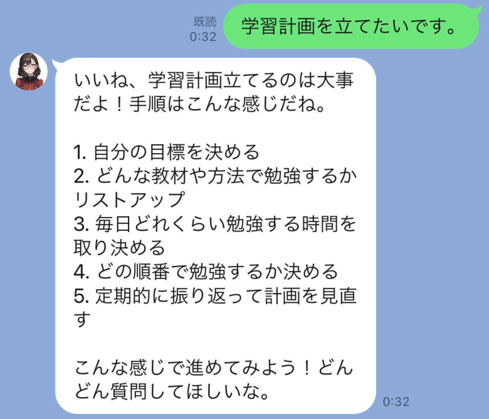 3. すぐにAI先生『まなび』とのチャットをはじめられます