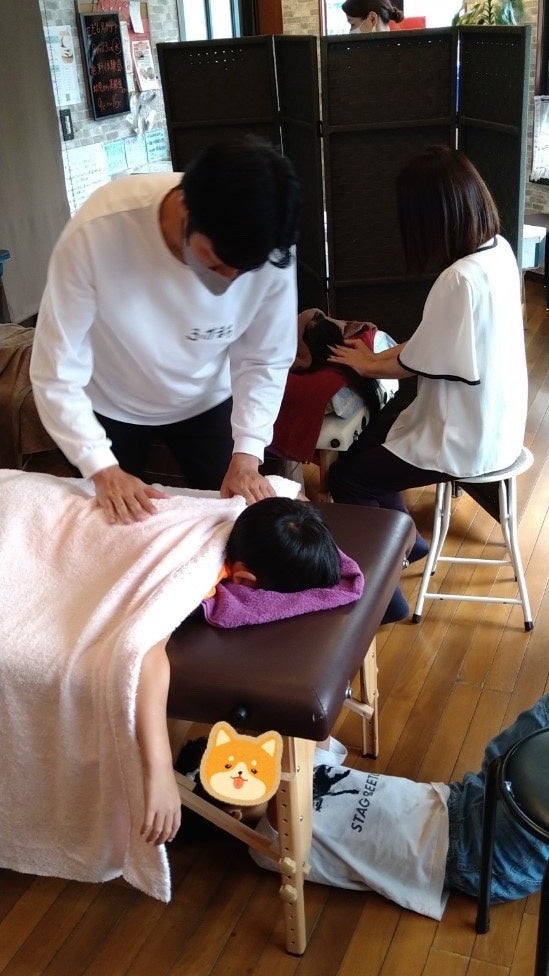 ・週末のイベントのひとつとして、親子で仲良く施術を体験する