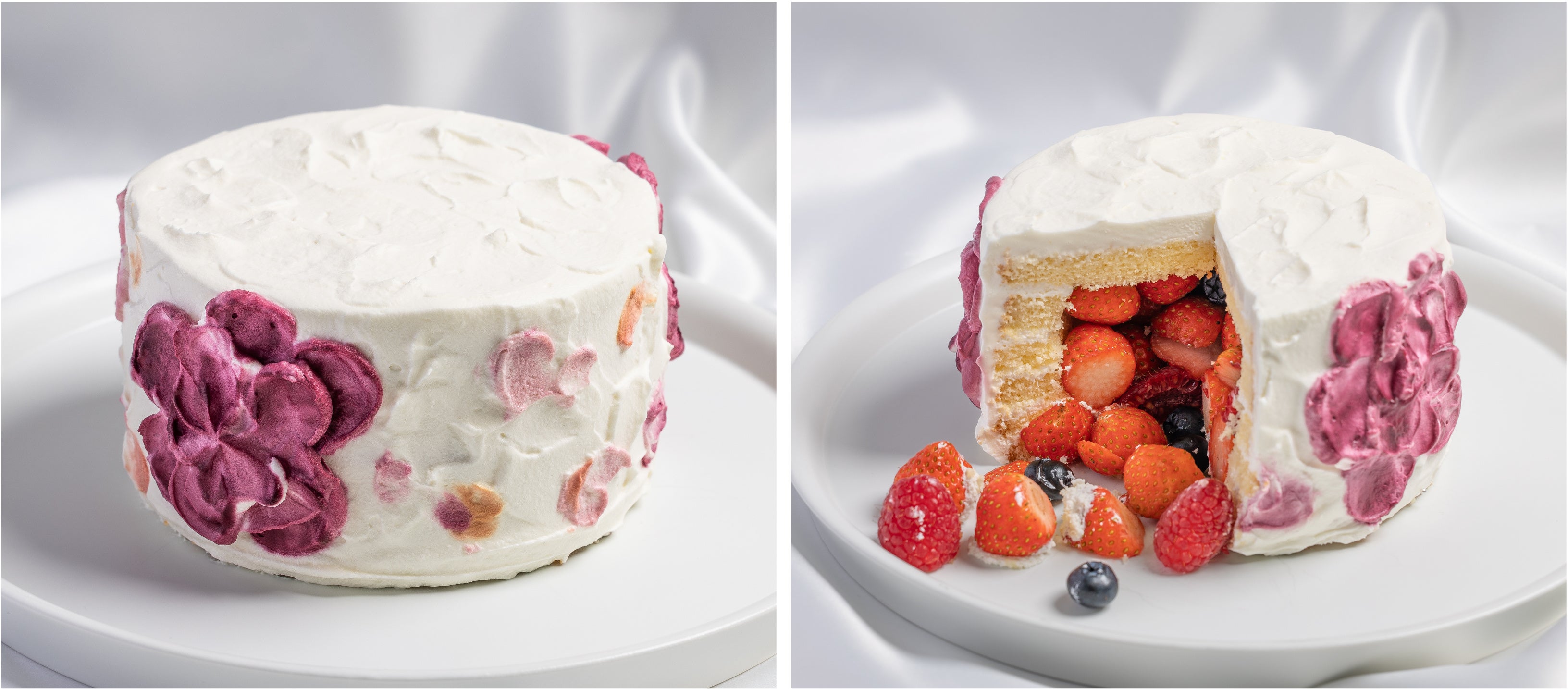 花びらの舞うデコレーション!カットすると中からこぼれるフルーツが!