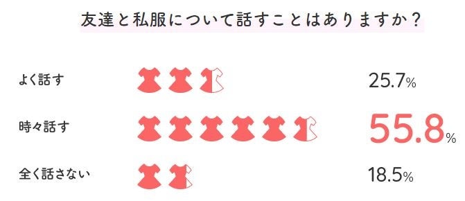 『友達と私服について話すことはありますか?』という質問に対し、「よく話す」が25.7%、「時々話す」が55.8%で、合わせて81.5%が「話す」という結果に。