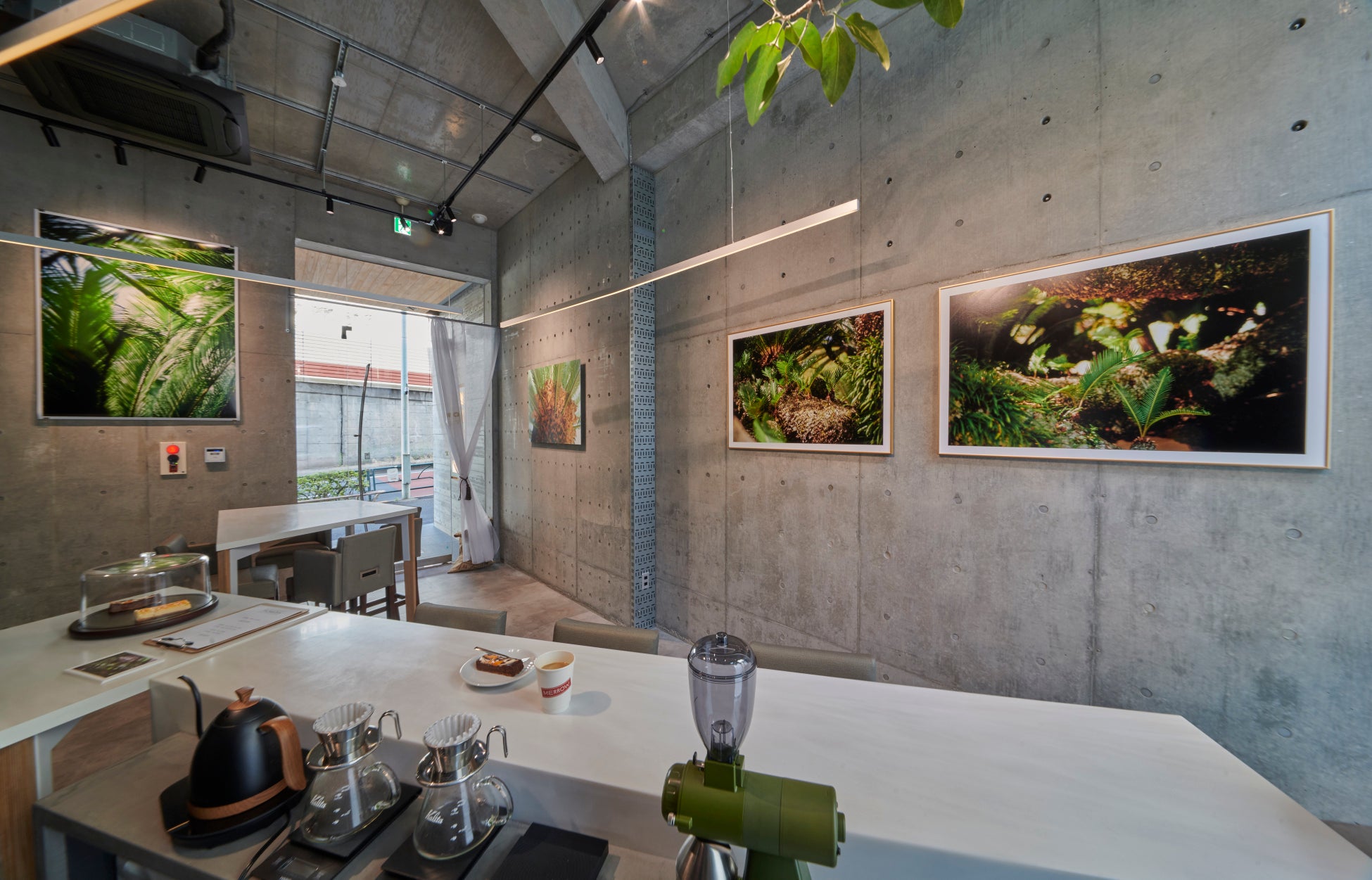 バリスタの田部堅太が展示や季節に因んだコーヒー豆を選定したコーヒーをお楽しみいただけます。