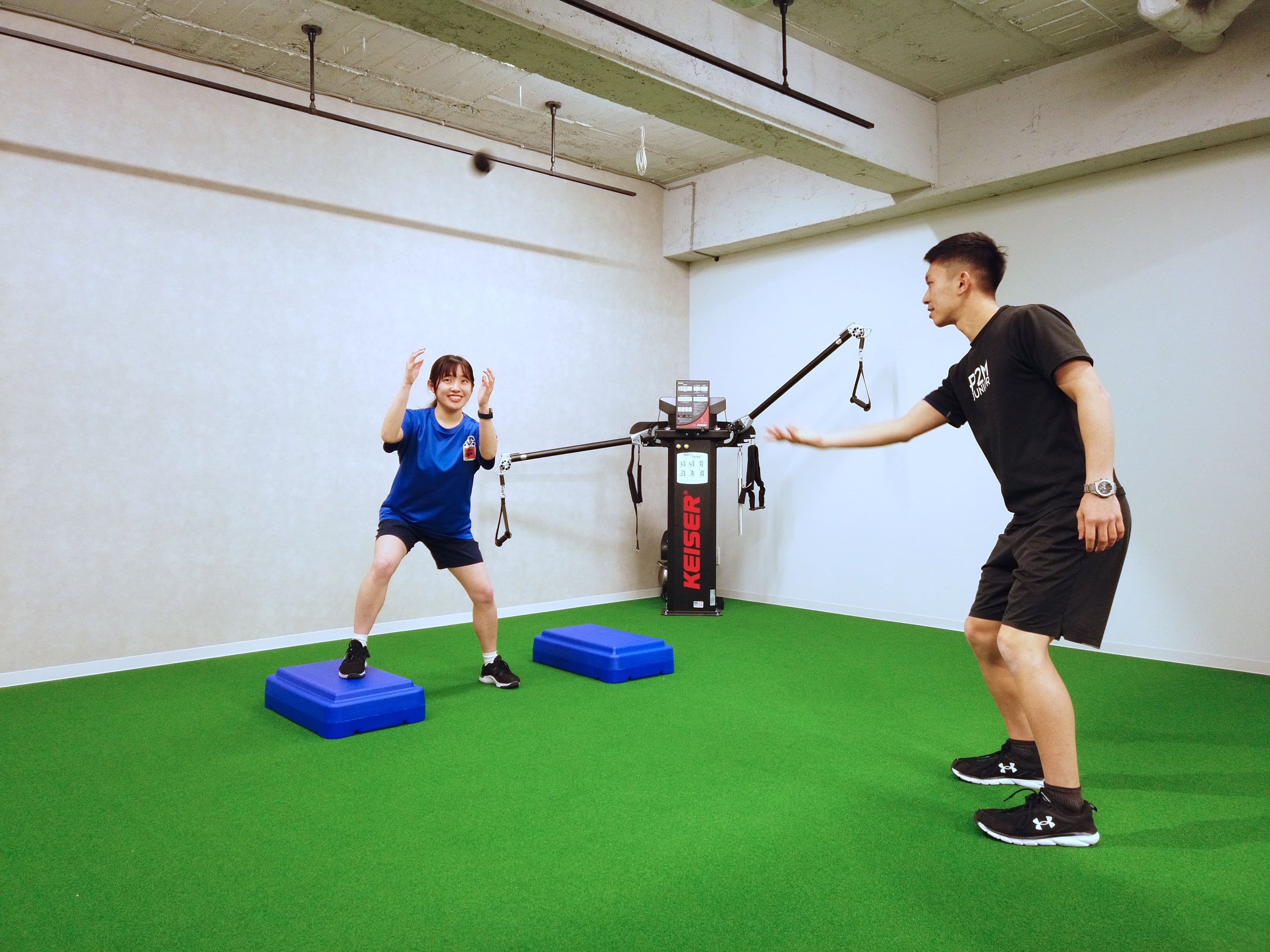 施設の半面、人工芝エリアを使用して「P2M Care ALK.」という機能訓練特化型デイサービスを週5日間運営しています。